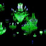 The sole Australian contribution to the Biennale is Crystal Palace by Ken + Julia Yonetani, who have placed 31 eerie green chandeliers in a darkened room to represent the 31 nuclear nations of the world. None of these nations, incidentally, are to be found in South-East Asia.