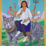 James Powditch’s idea of portraying Nick Cave as Orson Welles’s Citizen Kane is hardly more than a laborious gag. Kate Beynon’s humour is more appealing in her over-the-top portrait of artist, Sangeeta Sandrasegar as a Hindu goddess seated on a monstrous pussycat.