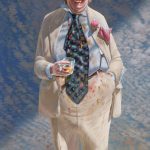 Matthew Lynn has captured Ken Unsworth’s features with his usual precision, but the idea of putting his subject on Fragonard’s swing seems incongruous. I can’t imagine Unsworth in a frilly skirt, although after seeing Mike Parr in a wedding dress nothing may be too far-fetched.