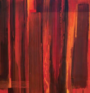This pale, beautiful work finds its infernal counterpart in Uncertain Light (2006), a fiery, sooty panorama of hunched, blood-red mountains separated by lines of poured and dribbled paint. Compared with the serenity of The Language of Mountains is Rain, this picture has an apocalyptic feeling. One thinks of bush fires rather than rain.