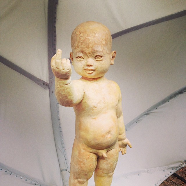There’s more soap, with all its metaphorical implications, in Vu Hong Ninh’s Little Soap Boy. This cherub gives the finger to the viewer when he might be expected to simply stand and look cute. It’s an oblique riposte to all the soft soap peddled by politicians, bureaucrats and religious leaders.