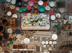 If you are wondering exactly what Zhao Xiangyuan collected, Wu Hung has complied a list of 53 separate categories of object, before giving up and writing “and so on.” It begins with wooden boards, chairs, blocks of polystyrene, flower pots, pottery jars, bars of soap; and goes on to include plastic bottle caps, fast food containers, telephones, bottles, bags, shoes, toys, old clothes, bird cages, an old gramophone and television set. And so on! Seeing this show may galvanise some viewers into cleaning out their own cupboards and sheds.