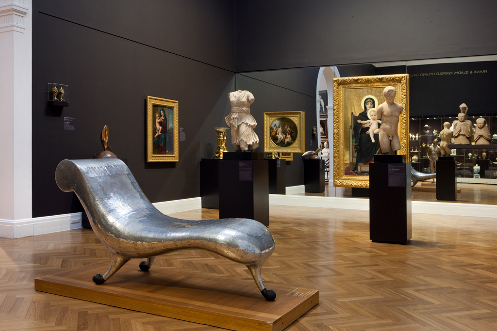 Inspired by the thematic hangs undertaken at museums such as Tate Modern, and by David Walsh’s brave and startling Museum of Old and New Art, in Hobart, Mitzevich and curator, Jane Messenger, have turned the old order on its head. Under a series of loose titles such as Memento Mori, Present Realities, Seduced, The New Classical, and (believe it or not) The Human Condition, they have combined Old Masters and antiquities with the most confronting examples of international contemporary art. This activist approach extends to the walls themselves, painted in dark but neutral shades, or covered in densely patterned wall paper.