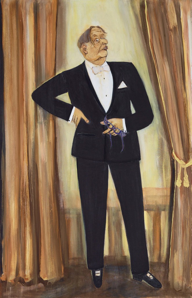 Pople’s picture of Humphries in a tuxedo is based on a famous Max Beckmann self-portrait, but the comparison does the current work no favours. The commanding sense of self-possession that Beckmann brings to his painting makes Pople’s look like a dreadful cartoon. The aging Humphries wears the expression of a startled chicken. He may have told the artist it was a “more than flattering likeness”, but one must allow for a large dose of irony.