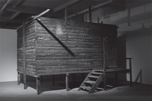 Conversely, a panel with abstract squiggles in pokerwork, by Anwar Shemza, or a smoke-tinged piece of paper held near a fire by Yves Klein, are representative of “burning”. Eduardo Basualdo’s The Island probably deserves a special mention, being a scaled-down house reconstructed from the burnt remnants of a building in Buenos Aires. Neither should we overlook Sterling Ruby, who has contributed four large cast-iron stoves, in reference to home and hearth. It’s like a game: “Get both ‘house’ and ‘burning’ into a single artwork.”