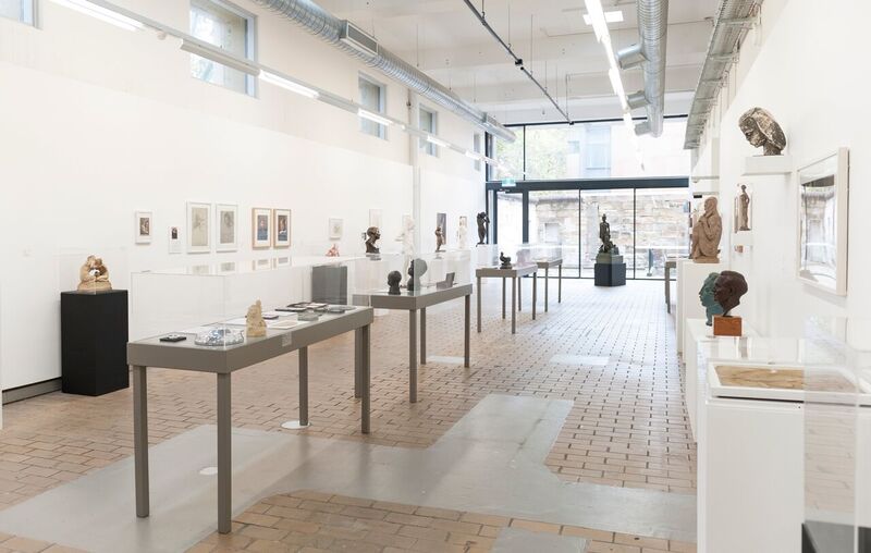 The exhibition is being held in the Rayner Hoff Project Space, the original studio in which Hoff made the sculptures for the Anzac Memorial. Before the art school reclaimed the entire campus the building was used for cooking classes, and the floor still bears the scars from where the stoves have been removed.