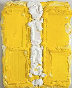 Bram Bogart has taken that instant and monumentalized it in enormous paintings that consist of a few broad brushstrokes captured in a medium that resembles a meringue. In Daybreak (1997), he has created a work that is as much sculpture as painting, suspended on a metal frame. For many years this has been Bogart’s signature style, but through a series of smaller, earlier works we can see the way he reached this plateau. Like Lucio Fontana with his sliced canvases, or Morris Louis with his stained ones, it is a trademark that has proven amazingly durable. Bogart’s works still have the capacity to take one by surprise, through their saturated colour and imposing physical presence.