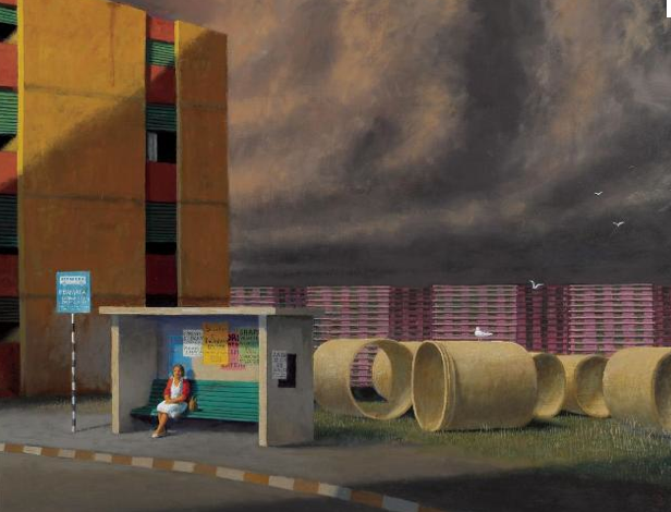 Jeffery Smart, The bus stop, 2009, oil on canvas 85 x 108 cm