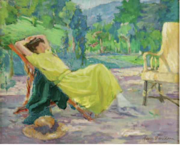Bessie Davision (1879 - 1965): La Robe Jaune, 1931, Oil on canvas 38 x 46cm