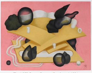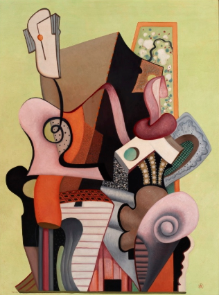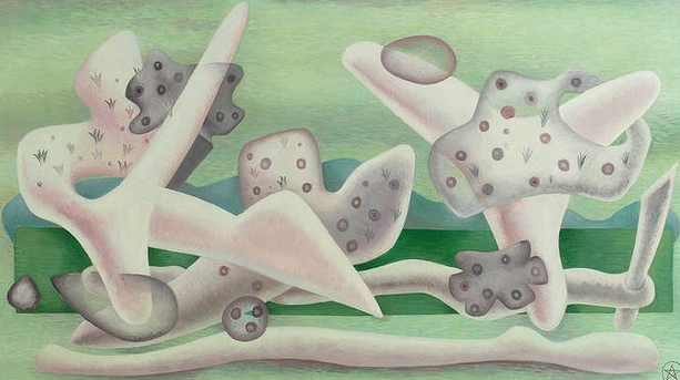 Another consistent feature of these paintings is Power’s love of illusory three-dimensional space, which may reflect the influence of Fernand Léger, of Surrealism, and of Karl Blossfeldt’s popular book, Original Forms of Art (1929), which led many artists to experiment with biomorphic imagery. One can imagine almost any of Power’s paintings remade as a freestanding sculpture.