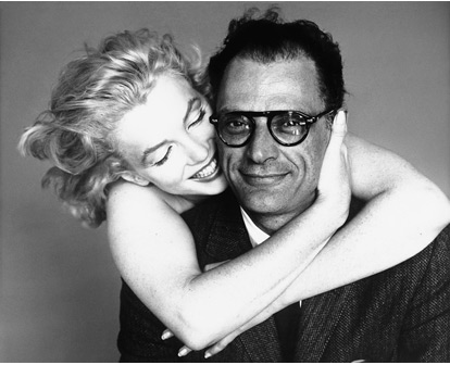 One work that does exist as a postcard is a portrait of Marilyn Monroe, taken on May 6, 1957. There is a sadness in this picture that belies the golden coiffure and the glittering sequined dress with its plunging neckline. Monroe looks inert, as if she is weighing up her status as an object rather than a human being. The point is made even more forcefully by juxtaposing this image with a photograph taken two days earlier, showing Monroe with her arm draped around her husband of those days, playwright, Arthur Miller. She snuggles against his cheek, with a big grin, while he comes across as a model of masculine smugness.