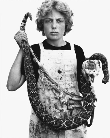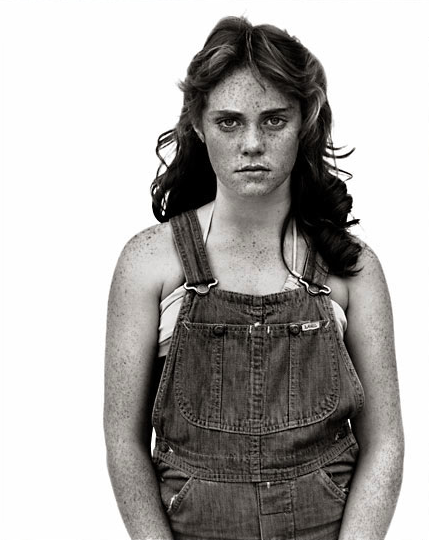 Avedon’s last major series, The American West, proved as controversial as Nothing Personal. Responding to a commission from the Amon Carter Museum of Fort Worth, Avedon set out to photograph ordinary working people in the West, but his detractors felt he was deliberately focusing on the dark side. Others argued that images such as the portrait of a freckle-faced twelve-year-old girl in dungarees looked too much like fashion photos. For his part, Avedon was happy to admit that his vision of the West was an “opinion” rather than a fact, but felt he had been compassionate rather than critical.