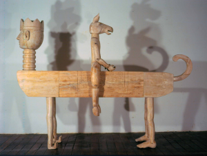 Given the chance to work with master craftsmen in the developing world, many artists would adopt an exaggerated sense of cultural sensitivity, but Rish seems to have taken the opposite approach. In line with his natural irreverence, he is less concerned with trespassing on some local taboo, than with falling into the traps of paternalism and patronisation. He has no wish to make a frozen fetish of “authenticity”, when all cultures are constantly evolving.