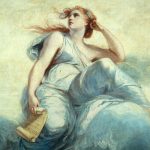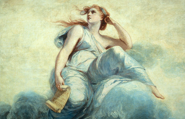 The exhibition begins, appropriately enough, with a painting by Sir Joshua Reynolds, the founding President of the RA, whose Discourses (1769-90) would become the basis of the School’s teaching program. Reynold’s Theory (1779-80) was painted for the ceiling of the RA’s library in its former venue of New Somerset House. A picture of a young woman in Grecian robes, it loomed over paintings embodying other subjects, reflecting Reynolds’s belief in the primacy of the intellect. In her hand the muse holds a scroll with the inscription: “Theory is the knowledge of what is truly nature.”