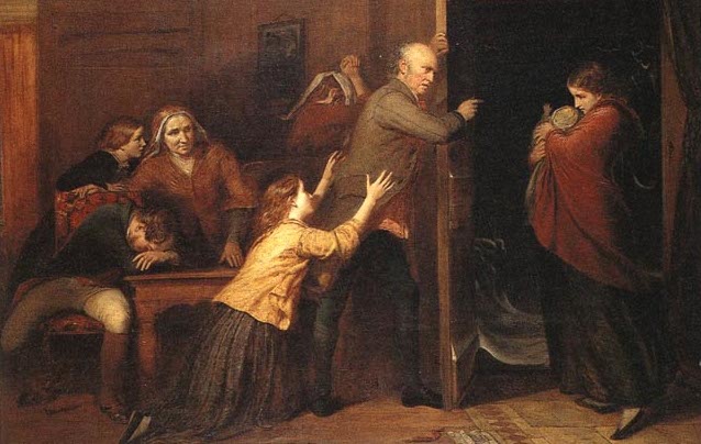 It is very different from the sentimentality and melodrama of so much Victorian narrative painting, of which Richard Redgrave’s The Outcast (1851) may be taken as an example. It shows an unmarried mother being evicted from the family home by her angry father, regardless of a sister’s pleas for mercy.
