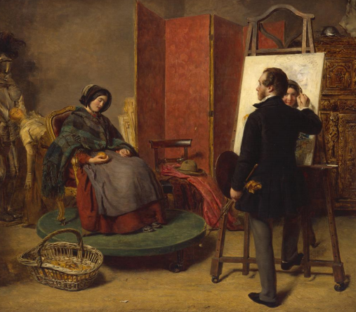William Frith was another showman, whose Derby Day was the crowd-pleaser of 1858. This sweeping panorama of British society was proto-cinematic in its appeal. In the Bendigo show Frith is represented by The Sleeping Model (1853), which shows the artist painting a poor orange seller who has dropped off from exhaustion. The picture is a social comment on the hard work to which this young woman was accustomed, but with the subtle, self-deprecating suggestion that Frith himself has been the most exacting of employers.
