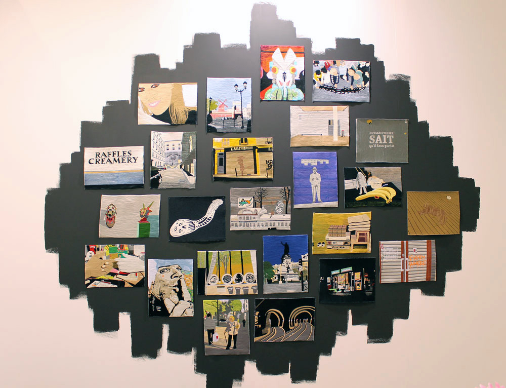 Nugroho’s La Rue Parle # 9 is also a modest work by his standards, made up of small, embroidered pictures of Paris. The artist produced the original images, but the embroidery was completed by a workshop he owns and runs. This shop makes both major pieces and small items that are sold through a retail outlet.