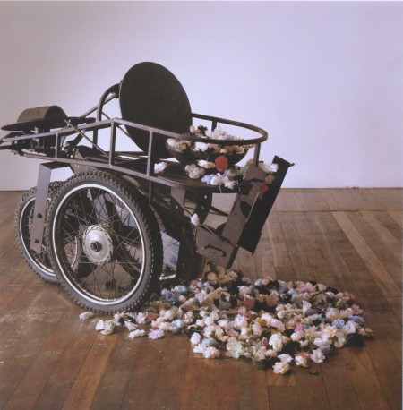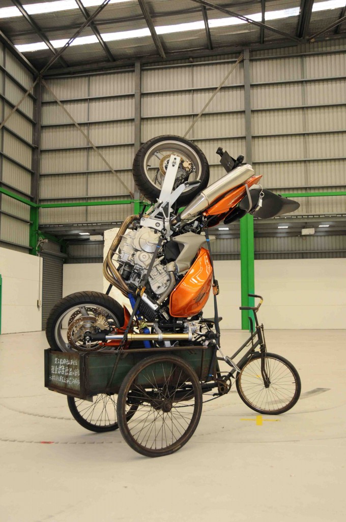 As usual with Goodwin, this is a pretty nifty idea constructed to the highest standards, that manages to have very little presence. It’s an interesting object in the way a model of the atom is interesting. The work would be more at home in a museum of science and technology than in any art gallery. The same could be said about Co-isolated slave (2010) – a brand new motorbike upended in the cargo tray of an old Shanghainese tricycle – which was awarded the Wynne Prize as a “figure sculpture” in 2011. The reference is to Michelangelo’s marble sculpture, The Dying Slave (1513-16), but there also seems to be a ‘hare and tortoise’ parable about old technology being more durable than the newer varieties.