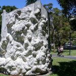 Then there are the public sculptures such as Mobius Sea (1986), initially situated in front of the Conservatorium, then relocated to a spot near the Art Gallery of NSW; the Corvette Memorial at Garden Island (1995); or the Exoskeleton Tower Reach (2000) in the foyer of the Galleries Victoria, George St. It’s hard to live in this part of the world and not come into contact with Goodwin’s work. He has even designed a series of eco-friendly public toilets for the RTA.