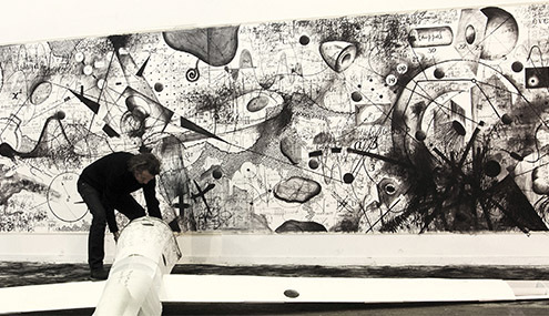 The maths turn up one final time in a new piece, The Drone Stripped Bare of All its Brides (2013), a panoramic drawing accompanied by a model of one of those notorious unmanned aircraft used by the United States in the Middle East.