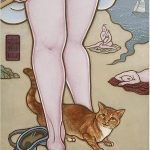 The stylised clouds in all three works are symbols of good fortune, even though in western culture clouds on the horizon usually mean impending trouble. There is no ambiguity about the cat rubbing itself against a pair of bare legs, the discarded diver’s mask, or the sunbathers relaxing on the beach. Australian comfort, security and hedonism are embodied in these images. This is in harmony with the Year of the Goat, which is generally perceived as one of the more benign signs of the Chinese zodiac. The goat – or sheep – is a sign of kindness and compassion, but also weakness and anxiety.