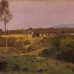 Roberts admired the work of Whistler, and would introduce his friends to the twilight world of the “nocturne”. His own best effort in this genre, ‘Evening, when the quiet east flushes faintly at the sun’s last look’ (c.1887) is deservedly given a wall to itself in the NGA show.