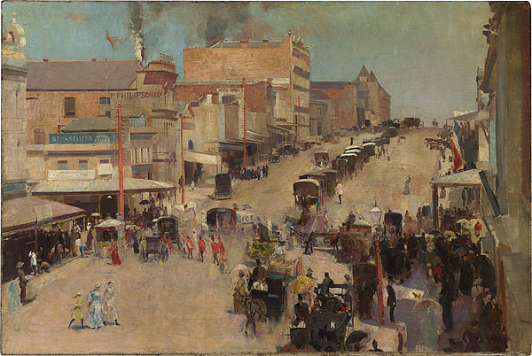 Roberts was also the first Australian to paint a great urban picture: Allegro con brio, Bourke Street west (c.1885-86/1890). It may be the most misunderstood painting in the history of Australian art. Nobody at the time could see why an artist would choose to paint a dusty, busy street rather than a landscape.