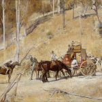 However, it is the great “national” paintings for which Roberts will always be remembered. Shearing the rams celebrates the heroism of rural labour; Bailed up (1895/1927) shows a stagecoach being held up by a bushranger in the most laconic fashion; A break away! (1891) is an action study, depicting a runaway flock of sheep. Each of these paintings repays a long, detailed analysis, but this column is not the place.