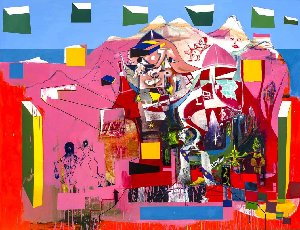 The senior painter in this show, if we discount an emerging artist such as Loongkoonan, is Gareth Sansom, who is working at the peak of his abilities. Sansom is an artist who appears to make up the rules as he goes along, with no concern for schools or styles. Paintings such as A universal timeless allegory or Miss Piggy’s brush with mortality (both 2014) are packed with narrative fragments, uninhibited in terms of colour and form.