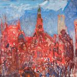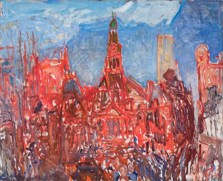 Kingston’s works may be more appealing than Connor’s, but there is more to admire in the latter’s unruly mark-making. The motif is always important to Connor, but each painting devolves into a ferocious, internal struggle. His strangest piece is probably Town Hall crowd (2004), which depicts this Sydney landmark in grubby shades of red, with a sky carved up into equally dirty planes of blue. The work is both dingy and weirdly cheerful. Its very lack of formality compels the viewer to look hard, trying to find a line between beauty and ugliness.