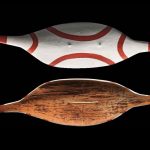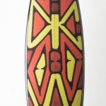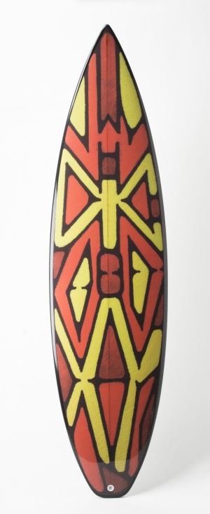 The shield is an important motif in this exhibition, which includes an elaborately carved piece collected from the Queensland rainforest in 1866-68; a parrying shield acquired by Major Thomas Mitchell on his expedition across the Riverina in 1836; and an early shield from the Kaurna Miyurna people of Adelaide, collected in the 1840s. There are also brand new shields by artists such as Jack Buckskin and Sean Faigan; and the shield-as-surfboard, made by Vernon Ah Kee and Peter Farmer. Are we meant to see a positive message in a weapon of war being transmuted into an instrument of leisure? The artists could just as well be saying that indigenous people still need their shields today.