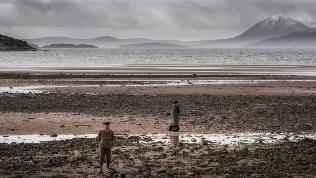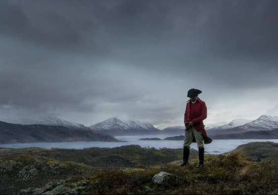 Interspersed with these sequences are a series of original scenes, as static as tableaux vivants, showing solitary figures from different centuries staring solemnly out to sea. They are accompanied by props – furniture piled high as if rescued from a shipwreck, clocks, a pram, a bicycle. These figures apparently act as observers or witnesses. They seem generic, although the catalogue identifies one as Olaudah Equiano (c. 1745-97), a freed slave who travelled the world and wrote a book about his experiences.