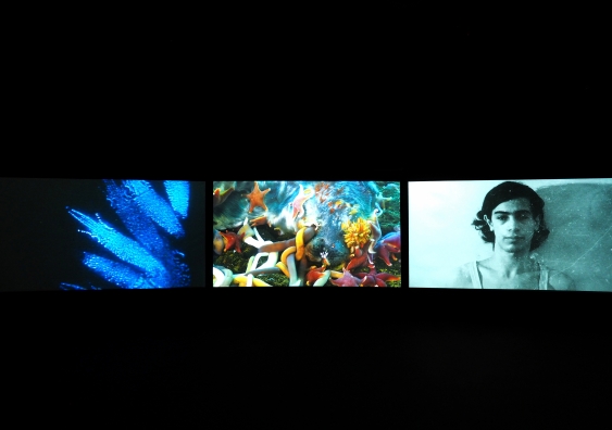 I don’t think this response is due solely to my own sensitivities. One might compare Vertigo Sea to a film such as Chris Marker’s Sunless (1983), which is made for a single screen, but has a similarly fractured narrative. Marker also leaps around between different parts of the world, making broad observations about humanity and nature. The difference is that Sunless engages the viewer in a dialogue that becomes increasingly more engrossing. With Vertigo Sea we are kept at a distance by the relentless triple barrage of beautiful and terrible images. Ultimately we feel as detached as those motionless figures that stand by the sea shore.