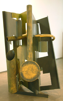 Unlike most of his peers who make abstract welded metal sculpture, Selwood is rarely tempted by the found object, the sensuous curve of a piece of pipe, or the hint of figuration. Among the works showing in Maitland, only Transfigured Night (2004) has this kind of complexity, but even that piece is dominated by flat planes from which sections have been cut and folded.