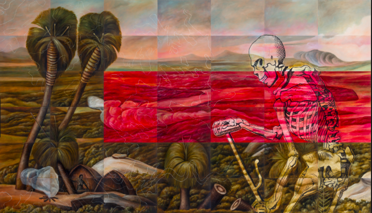 His thing. Oil paintings making critical re-appropriations of early colonial landscapes.