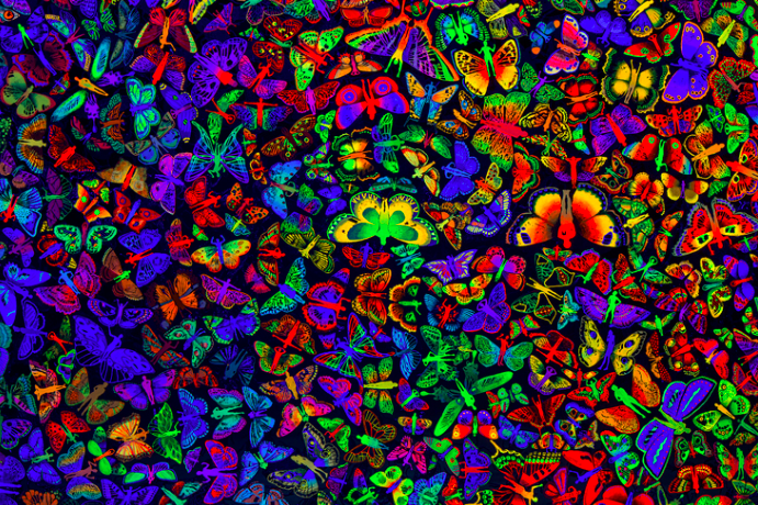 Ben-David is a practised crowd-pleaser, whose work has been shown all over the world, and many times in Sydney. Human Nature includes two of his greatest hits: Blackfield (2006-09) and The Other Side of Midnight (2013). In the latter we enter a pitch-dark room to find a floating globe made up of brightly-coloured butterflies and tiny humanoids. Moving to the other side we realise that what we imagined to be a sphere is really a very thin disc. On the verso it’s all cockroaches, beetles and ants in shades of silvery-blue. Think of it as a before-and-after scenario for when the Doomsday Clock ticks over to midnight.