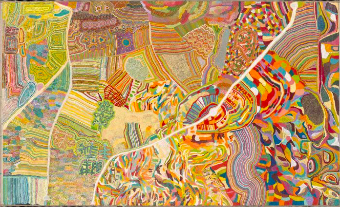 The term “songlines” was popularised by British author, Bruce Chatwin in his 1987 book of the same name. It was controversial at the time because Chatwin seemed to imply that indigenous people could sing their way across the landscape using songs as a kind of GPS. In fact the songlines chart the features of a landscape that have been named and invested with religious meaning, but finding one’s way in the desert is a matter of practical bushcraft accumulated over millennia. Nevertheless, the term has proved so durable the NMA felt justified in adopting it as a title.