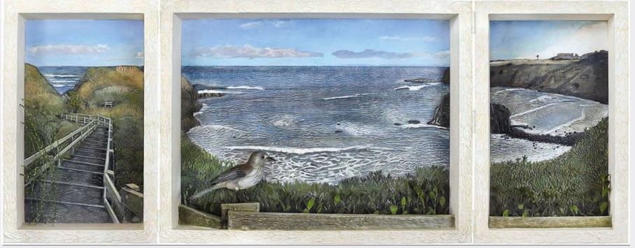 Her thing.Painting meets sculpture in images of the coastline, its birds and fish.