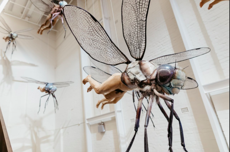Upon entering the gallery the first thing one sees is Li Shan’s Deviation: a squadron of creatures – half-man, half-dragon-fly – supended from the ceiling. The artist makes the same, rather predictable allusions to genetic engineering that we find with Patricia Piccinini’s work. I imagine, though, many viewers will think immediately of Kurt Neumann’s classic horror film, The Fly (1958).
