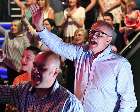Think of that notorious photo of Scummo doing the raised arm salute to Jesus at hs church service. He should have anticipated the comments this would generate but instead he denounces his critics and satirists as “grubs” out to do dirt on his fiercely held private beliefs. If it was such a private affair why invite the media in for a photo session? Presumably we were supposed to view Scummo as God’s man in Canberra, in the same way that evangelicals in the United States are telling us God wanted Donald Trump to be President (presumably to help speed up the Last Judgement).