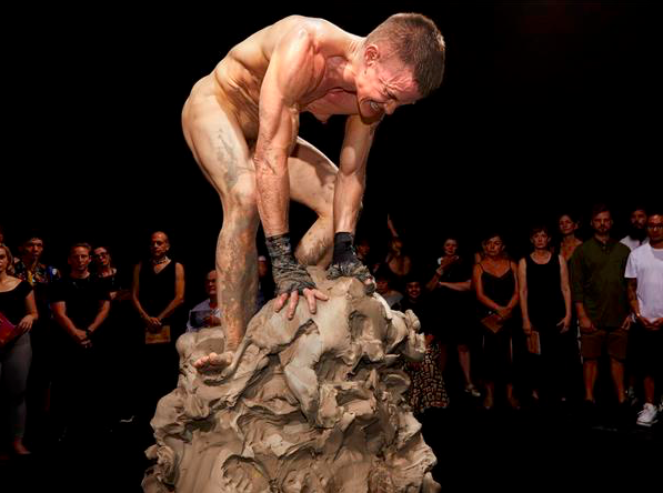 The Festival’s most confronting exhibition, at the Perth Institute of Contemporary Arts, was Alchemic, by Cassils – a transgender performance artist from California who likes to be known as “they” rather than the more mundane ‘he’ or ‘she’. Visitors to Cassils’s performance at the beginning of the show were treated to the sight of the stark-naked, musclebound artist beating up a large lump of clay, while strobe lights flickered furiously. The audience was photographed and is now part of the show in a life-sized image that bends around the walls, revealing a full complement of stares and grimaces, and one well-known arts administrator with a hand clasped across both eyes.