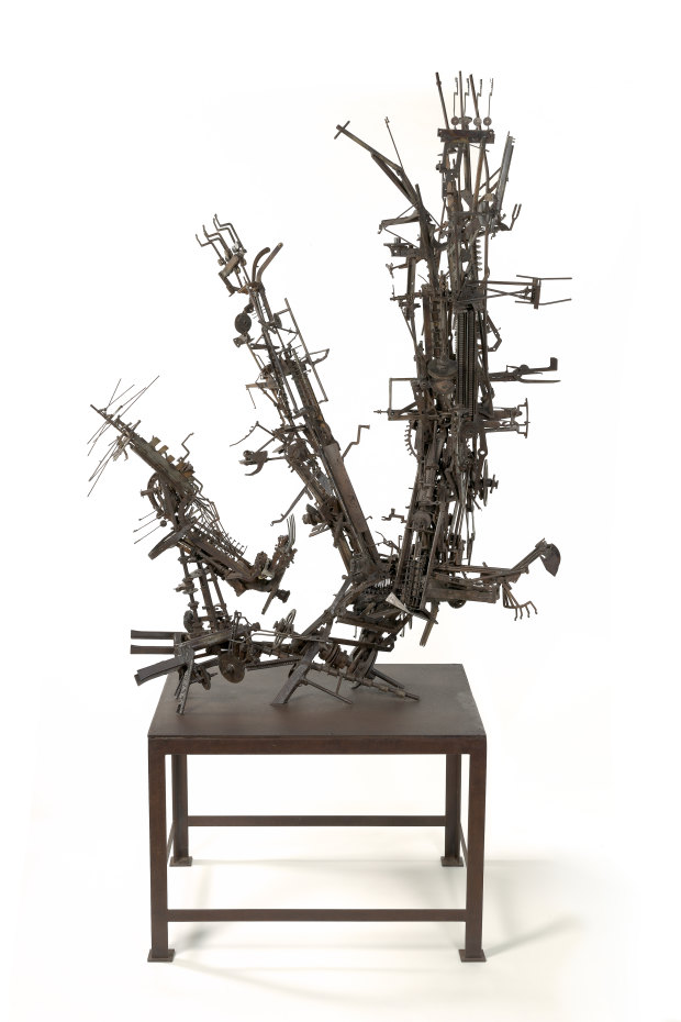 Those early sculptures such as No.39 Scherzo and No. 38 Child’s God (both 1948), are elegant biomorphic carvings that could pass for tribal fetish objects. When he began to make assemblages by welding together fragments of old adding machines and typewriters, Klippel said: “I just see them as shapes… I don’t see any meaning in where it has come from… I’m not trying to make any comment at all.”