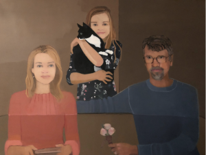 In a completely different way, Sinead Davies has produced a clever, appealing family portrait, in which the sitters and the setting are painted in a flat, unfussy manner, allowing each detail, each patch of colour, to stand out with exceptional clarity. The Jollys can feel well satisfied with their choice of portraitist.
