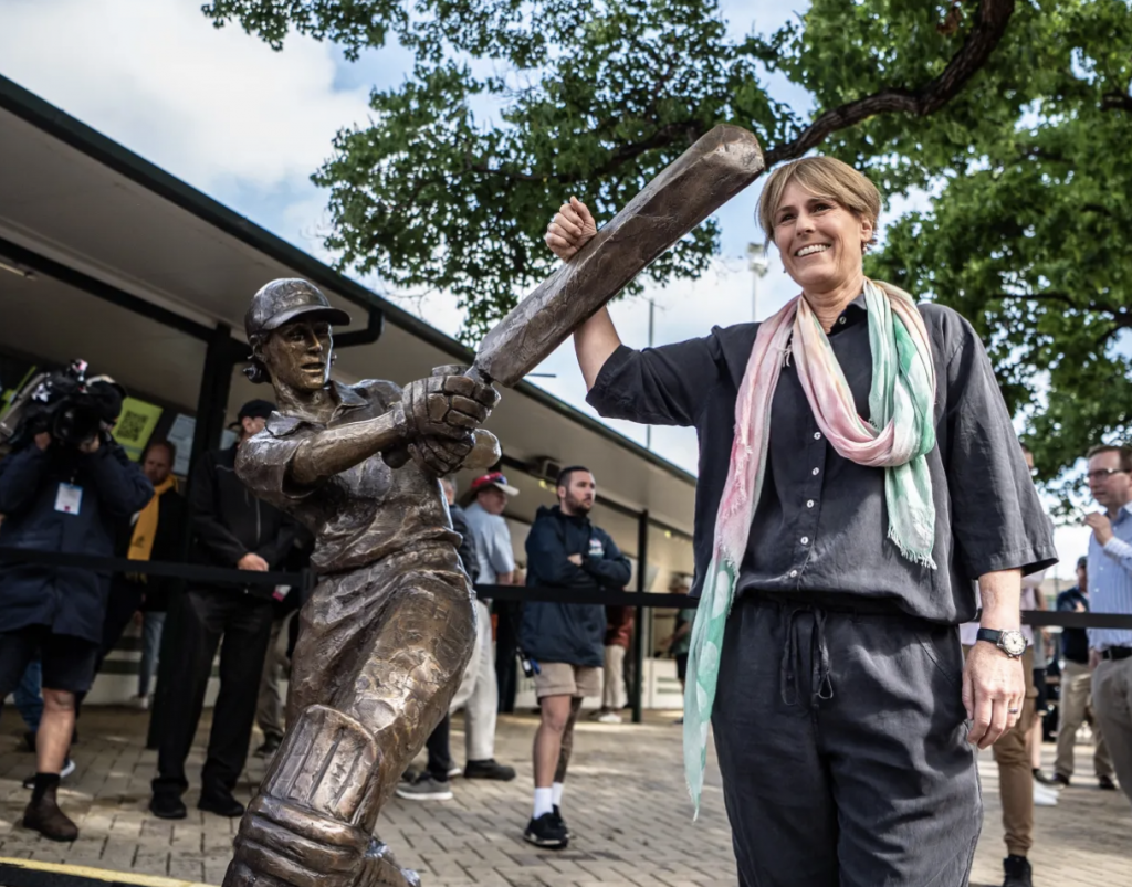 It was a wet start to the cricket year in Sydney, with an entire day washed out at the test match. With time to sit around and nothing much to do, there was much talk about a new statue of woman cricketer, Belinda Clark, that has been installed outside the SCG. Scanning the stories that were written about this conventional, life-size bronze, I was struck by how many of them never bothered to identify the artist. There was much discussion of Belinda Clark and her record, a lot of fuss about her being the first female cricketer to be so honoured, and quotable quotes from various officials, but it took me four attempts until I found an article that named Cathy Weiszmann as the sculptor.