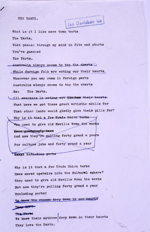 An Australian cultural landmark: Sir Les Patterson's poem on the Yartz (ms)